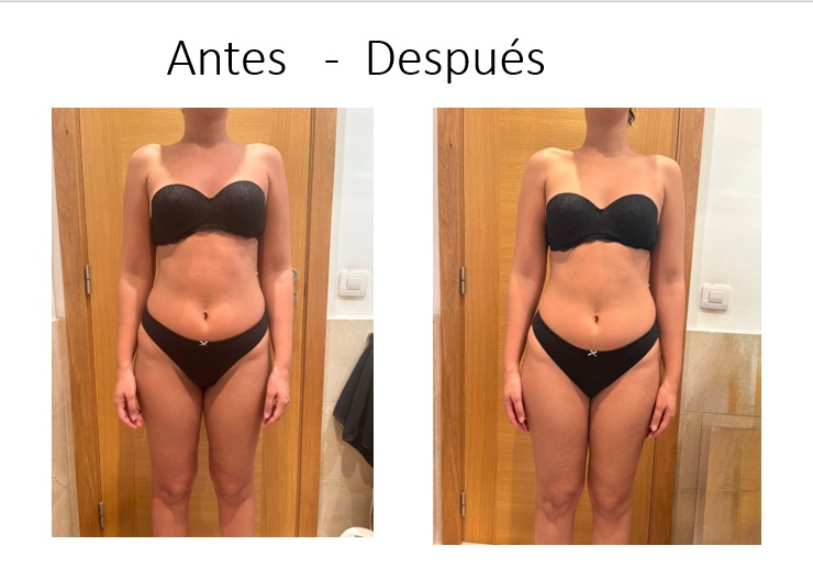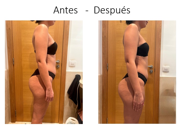 Uno de los cambios más evidentes se aprecia en la zona media del cuerpo, donde la cintura muestra una reducción clara de volumen.